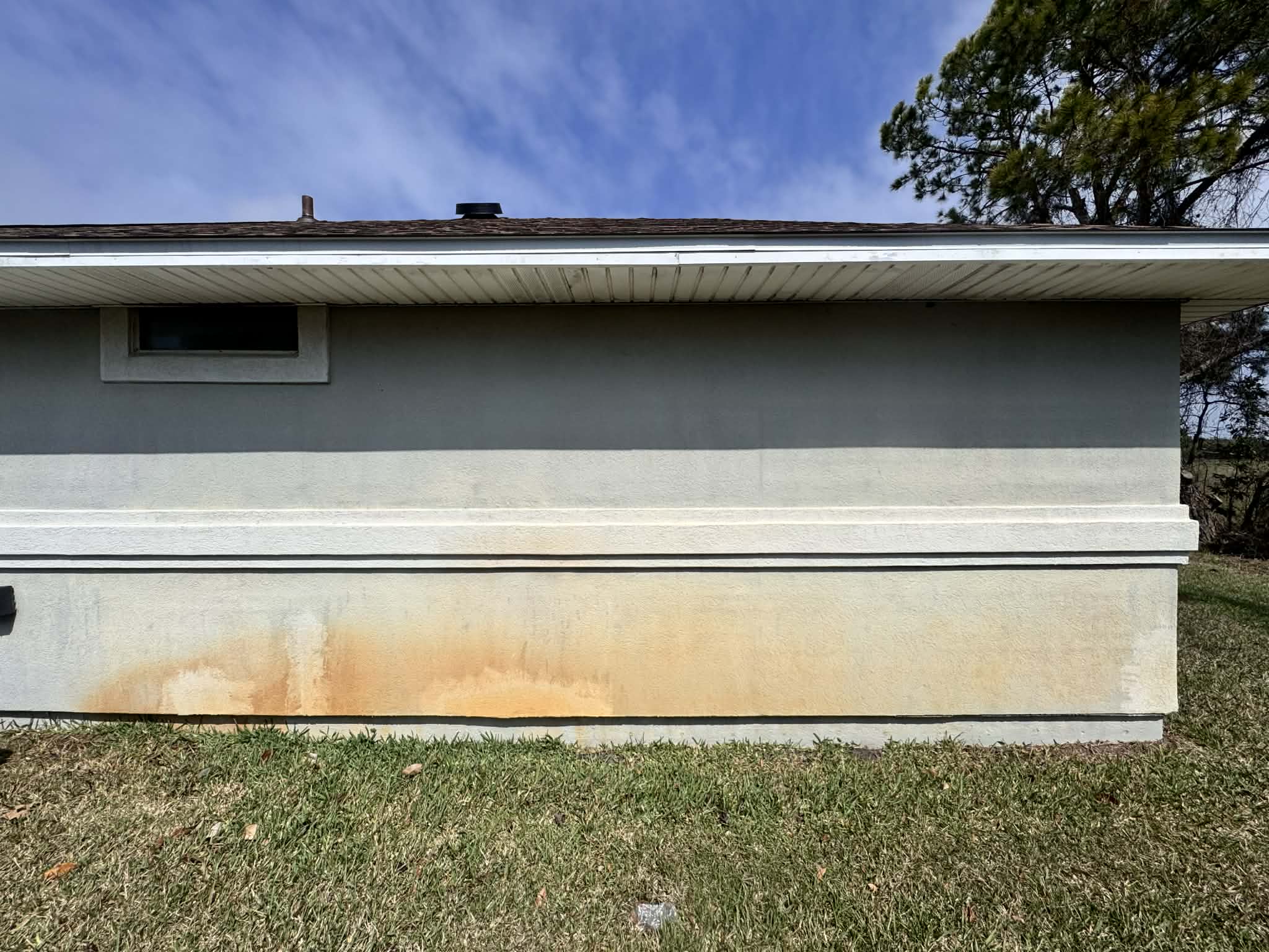 The house wash was carried out following the surface cleaning to restore overall curb appeal. The wash removed dirt, pollen, and other buildup from siding and trim, and it rinsed away any leftover rust particles from earlier work. Completing a full house wash after rust removal ensures the exterior looks cleaner and that any remaining discoloration is minimized.